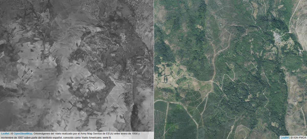 Esta visión puede resultar paradójica por nuestro sesgo generacional. Las primeras fotografías generales del territorio, realizadas por los Estados Unidos de América en la década de 1950 muestran cómo el territorio rural era diametralmente diferente al actual.