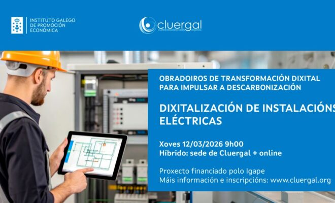 El obradoiro forma parte del ciclo de Obradoiros multidisciplinares de transformación digital para impulsar la descarbonización, organizado por Cluergal y financiado por el Igape – Instituto Galego de Promoción Económica, y la asistencia es gratuita previa inscripción a través de este link: Obradoiro. Dixitalización de instalacións eléctricas.
