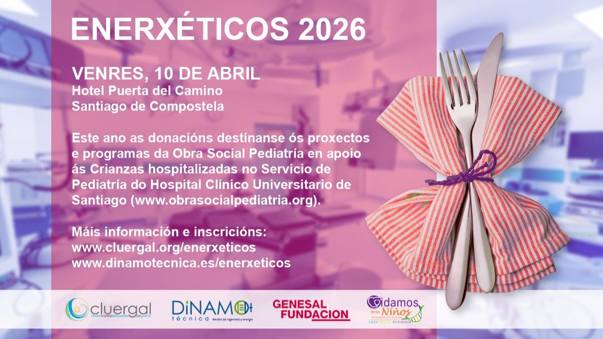 Tras la jornada técnica se celebrará la quinta edición de Enerxéticos 2026, organizada por Cluergal y la revista Dínamo Técnica, con la colaboración de la Fundación Genesal, y en la que se reconocerá nuevamente la labor de diferentes profesionales del sector energético gallego.